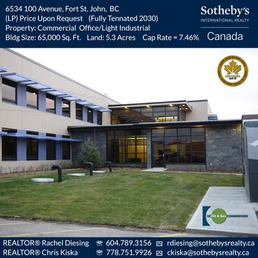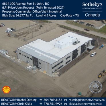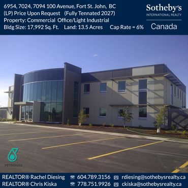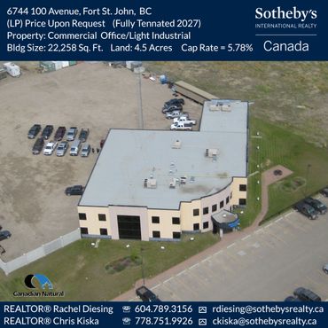 Sale contingent on purchase of six office/industrial properties and one agricultural property in lovely Fort St John, BC. Enjoy fully tenanted, triple net lease with competitive Cap Rate. All of the properties in this offering work under the umbrella of LNG and the oil and gas industry. LNG is a huge driving force in the Electrical Vehicle development for the future. LNG is also providing the transition fuel that will be around for the next 40 years or more. All of these companies have contracts/ownership with LNG. A lucrative investment for anyone wanting to invest in the future. Price given upon request.